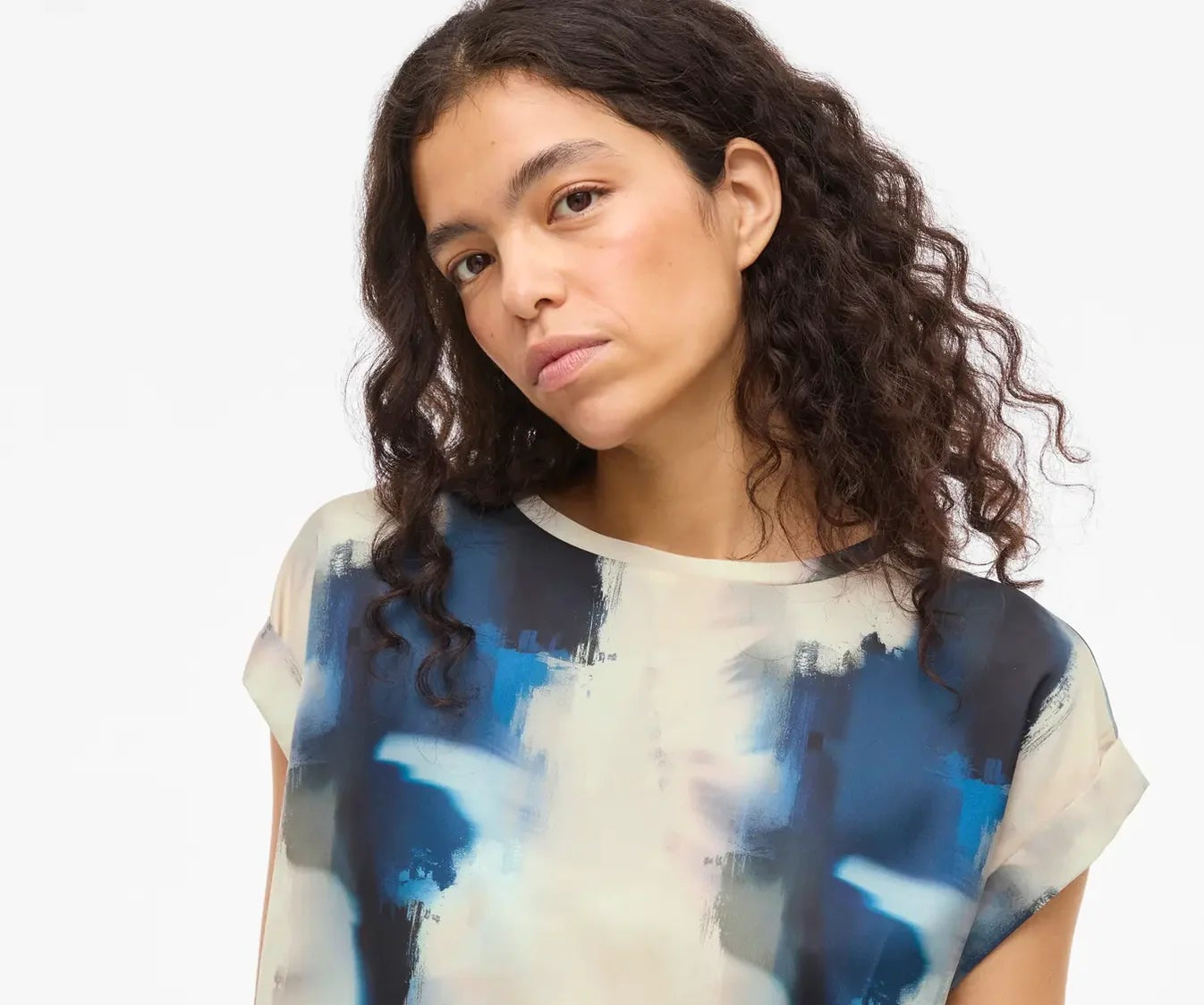 Satin Patterned Top - Cream & Navy