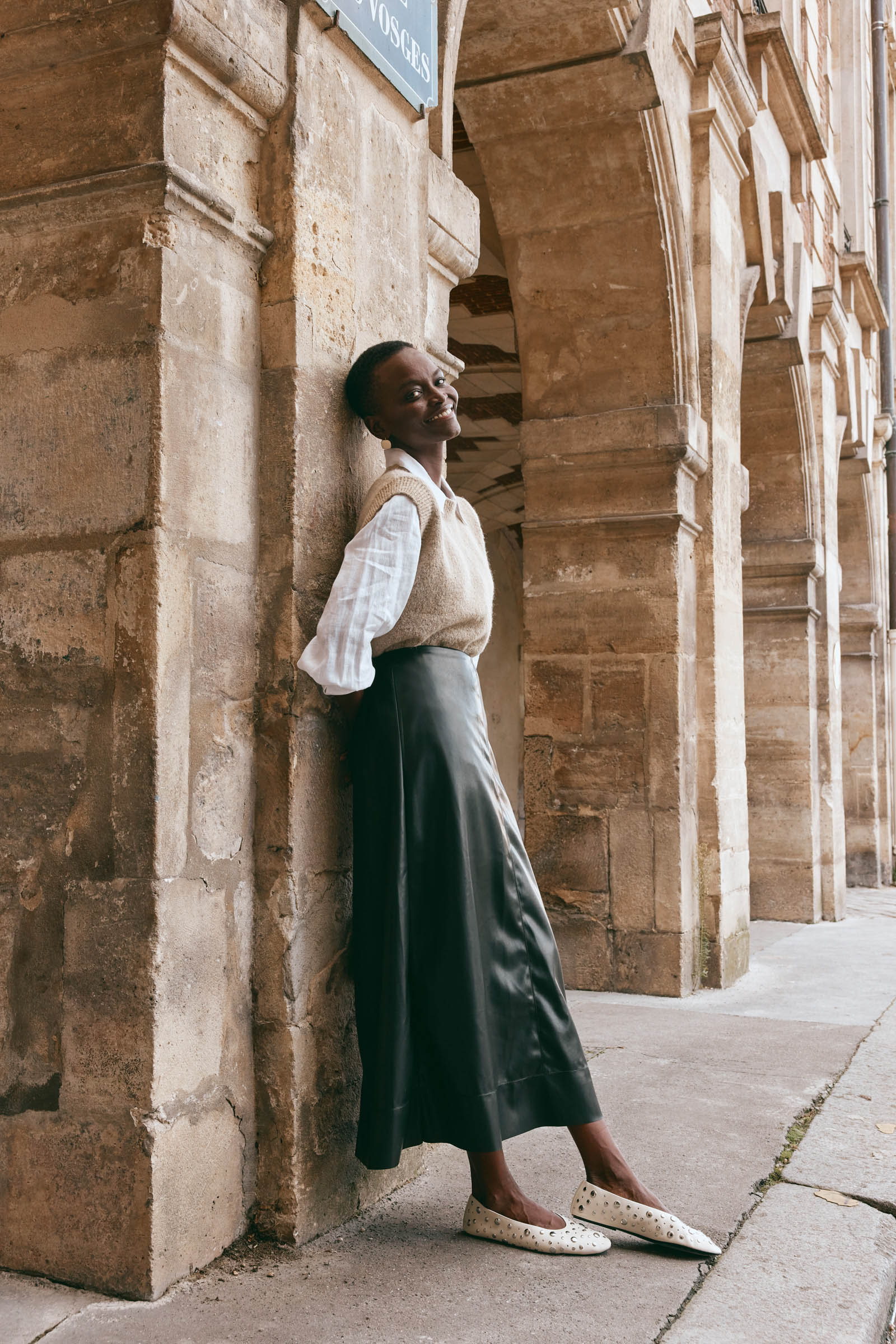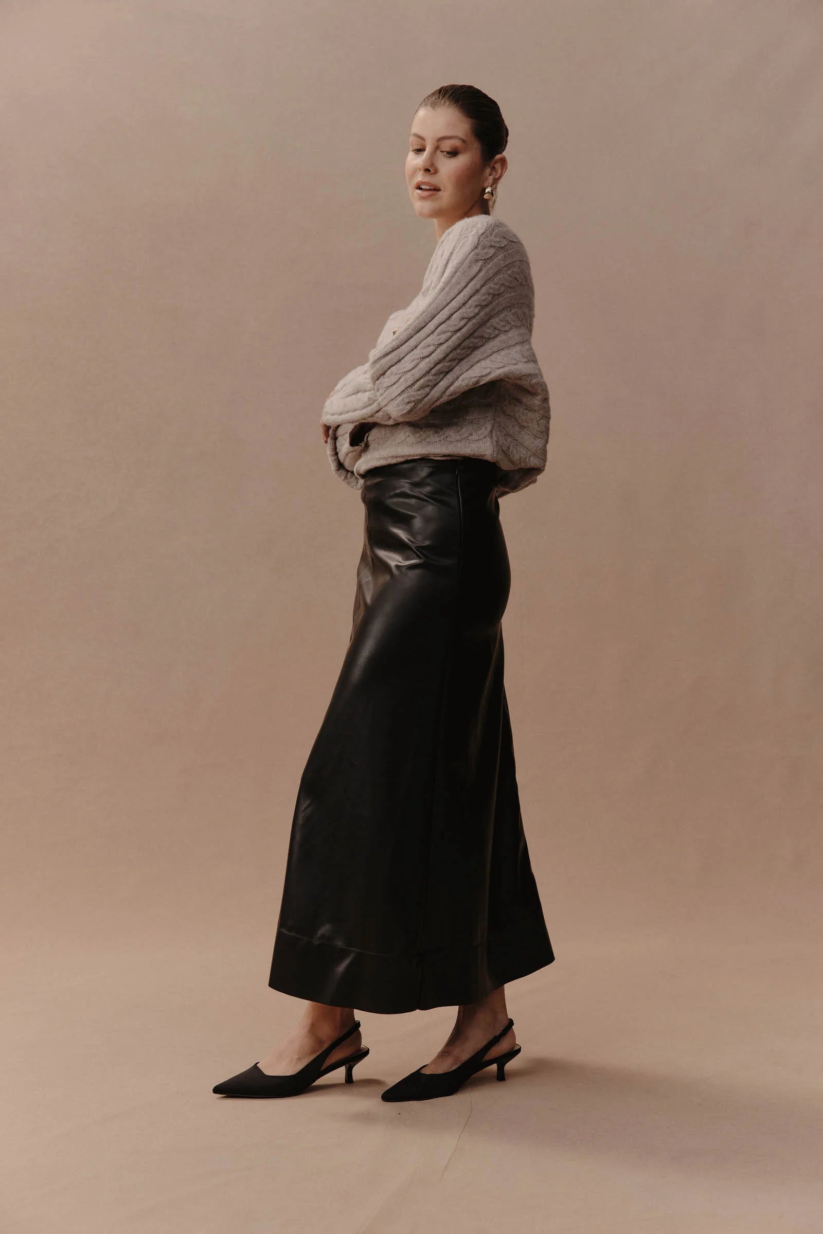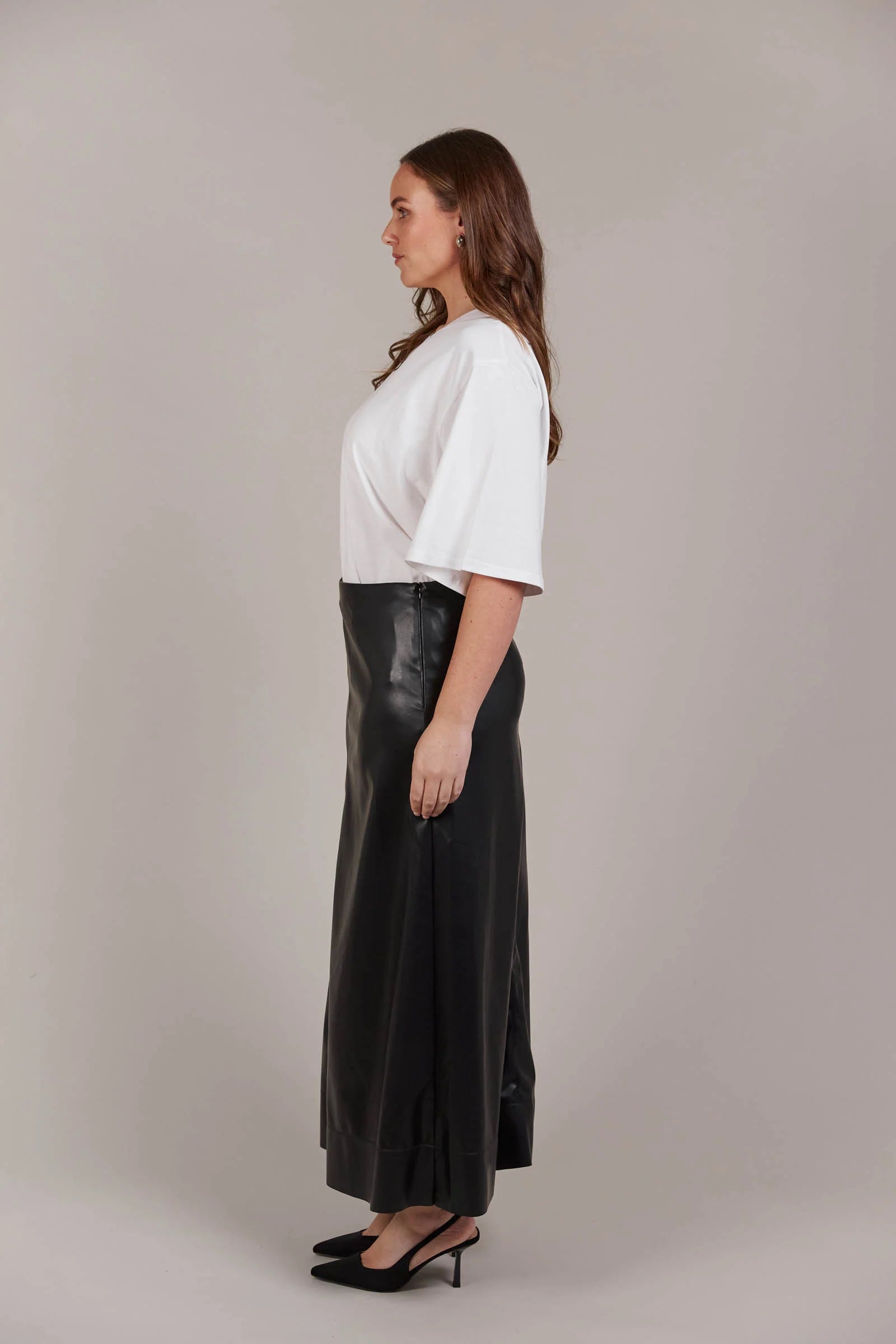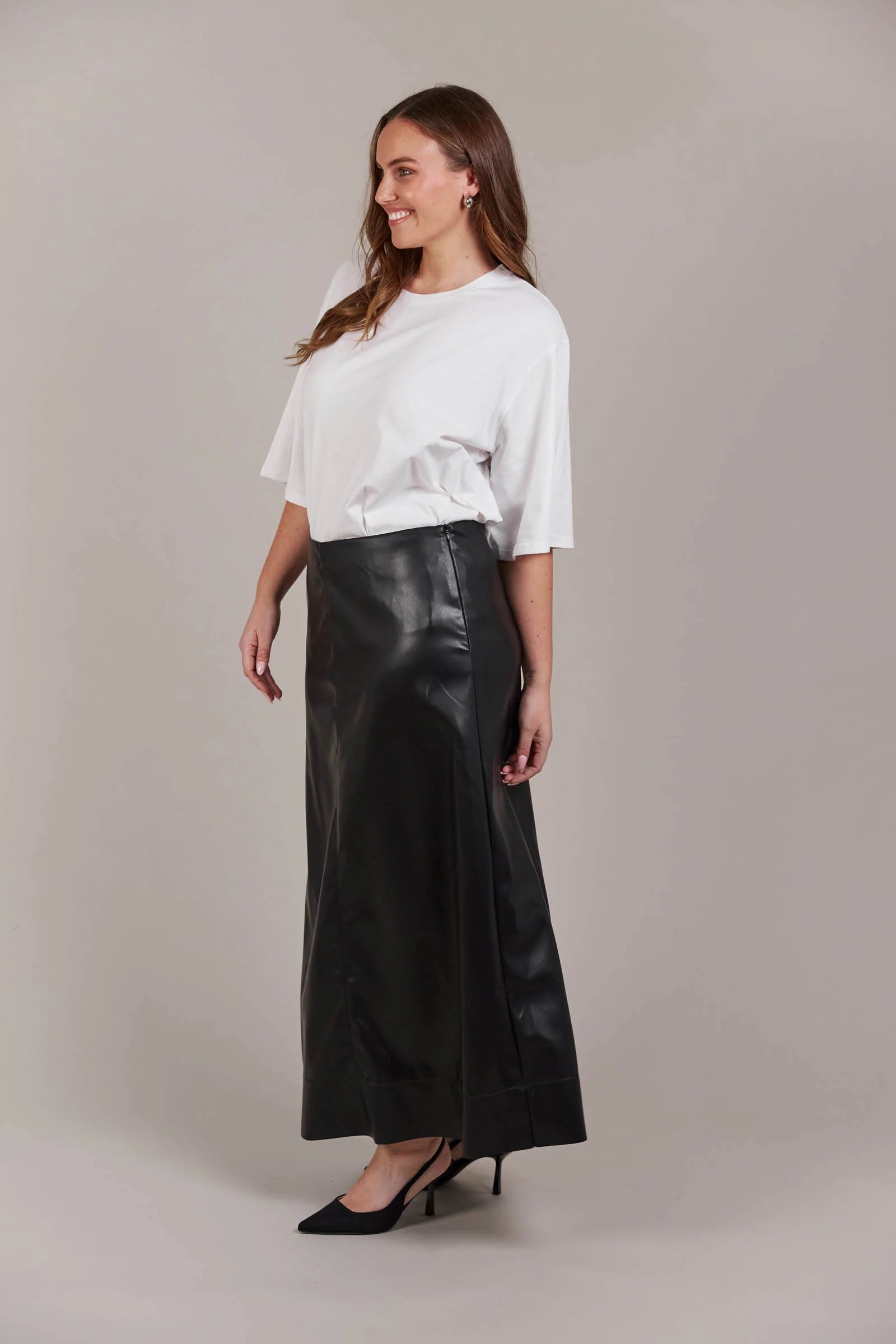 For a sophisticated and timeless look, the Allegro Maxi Skirt is the perfect choice. In a matte faux leather finish, this A-line skirt includes an inseam zipper closure and a modest ankle length.