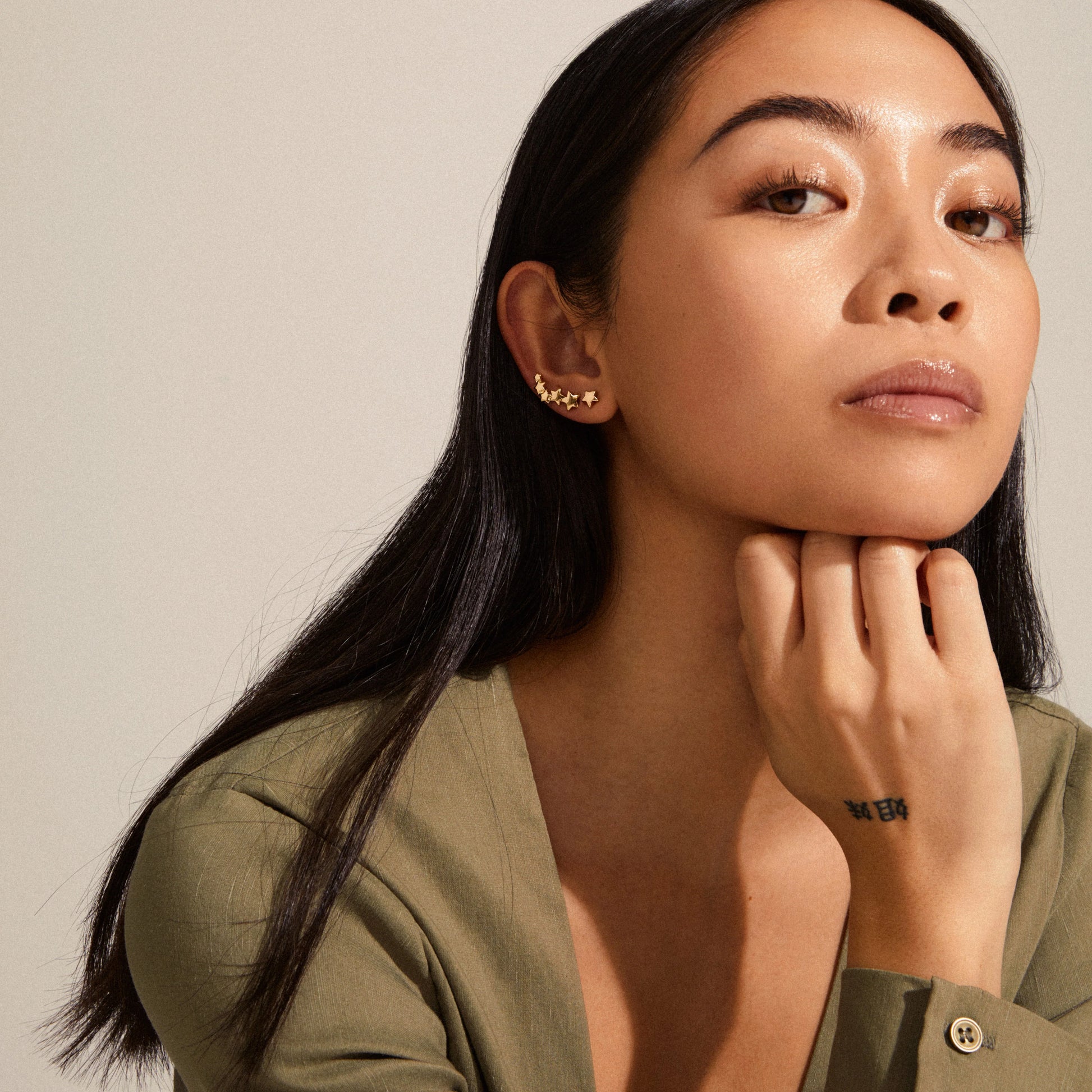 Description: When you wish upon a star, makes no difference who you are. Irresistible gold-plated earrings with an asymmetrical star design. One is an understated little stud, the other a shooting star that curves up along the ear.