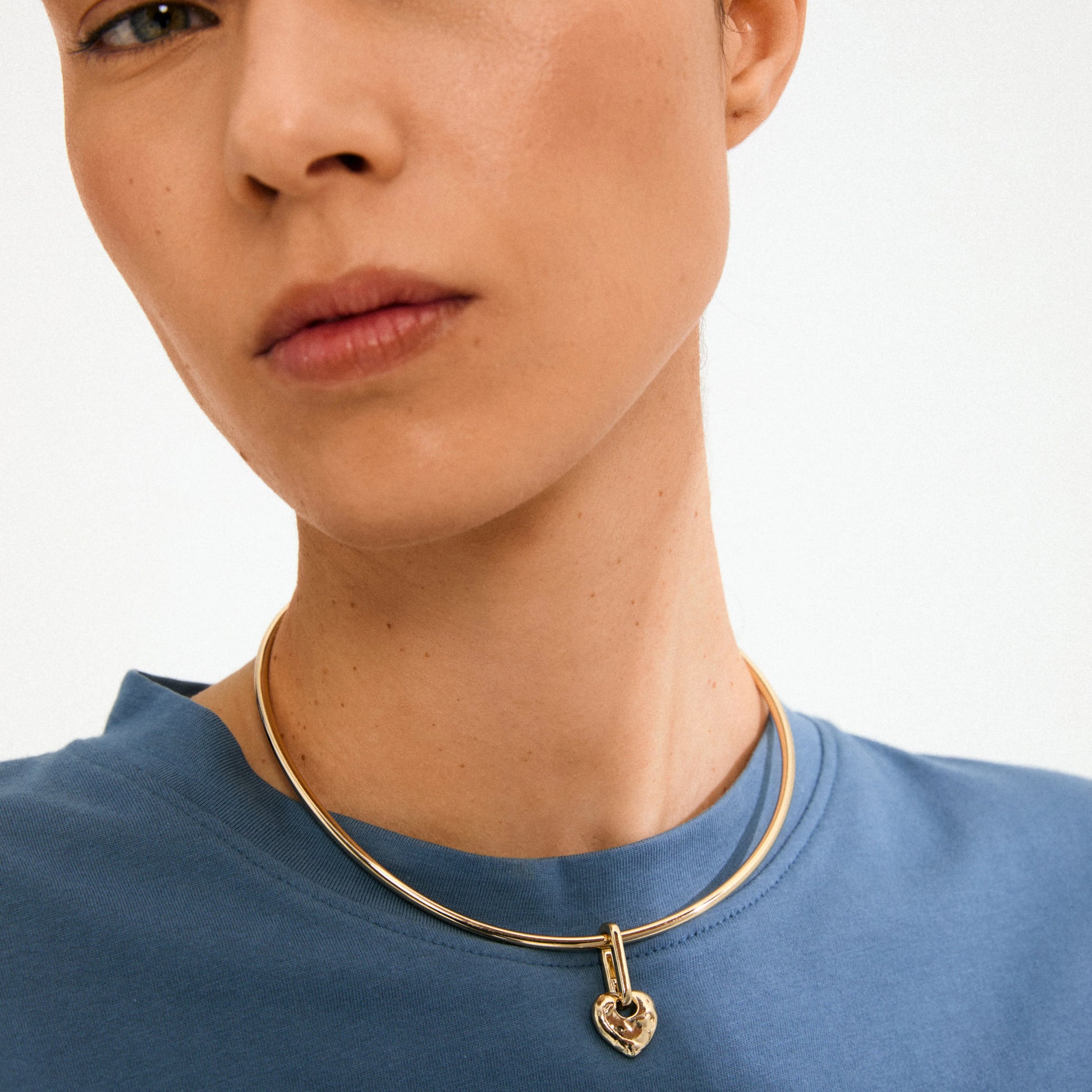 Description: Create your own statement with Pilgrim's beautiful charms. The gold-plated rustic heart pendant lends your style a unique and personal touch. Wear it on a stylish choker or a black leather cord for simplicity, or pair it with other symbols and letters for a personal look that represents you.