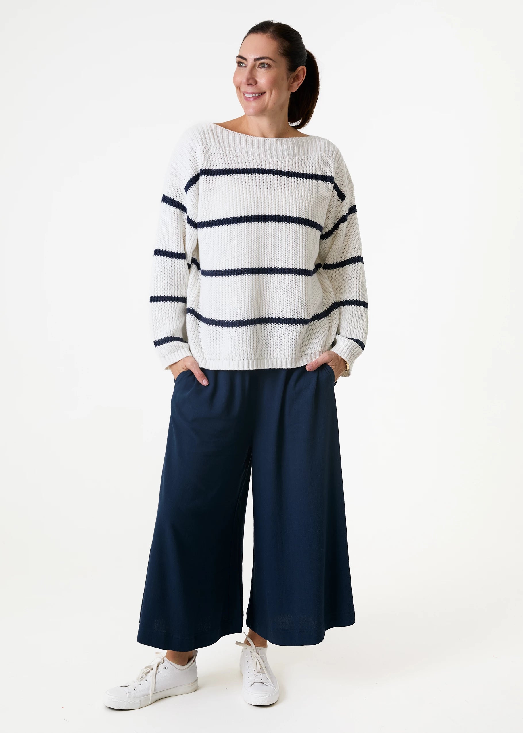 Cotton Mix Boat Neck Stripe Jumper - Various Colours