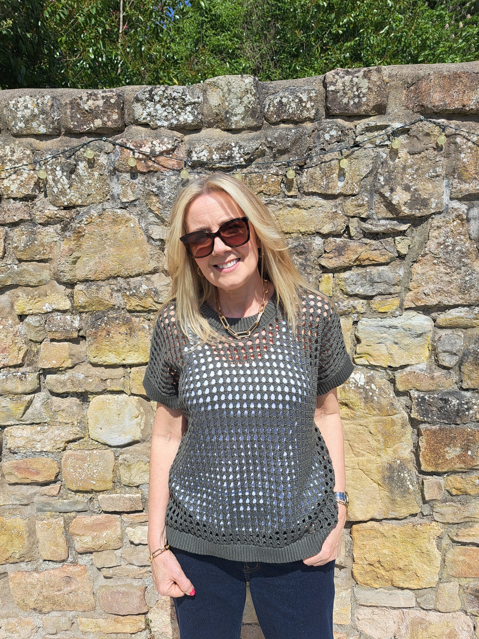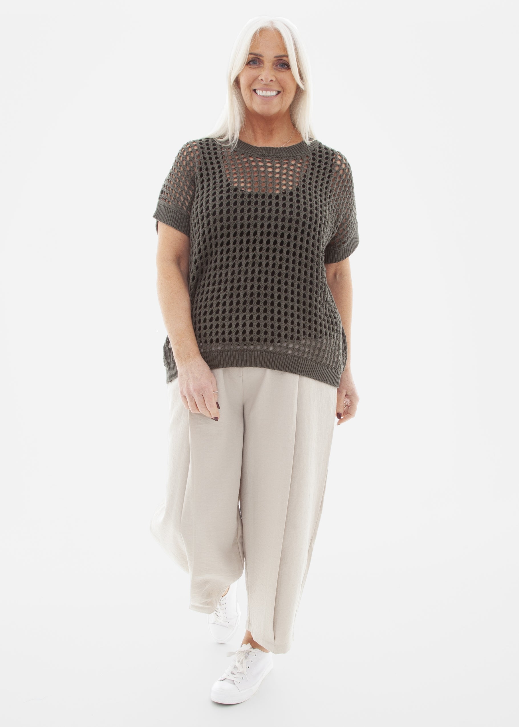 Cotton Mix Crew Neck Holes Jumper - Khaki