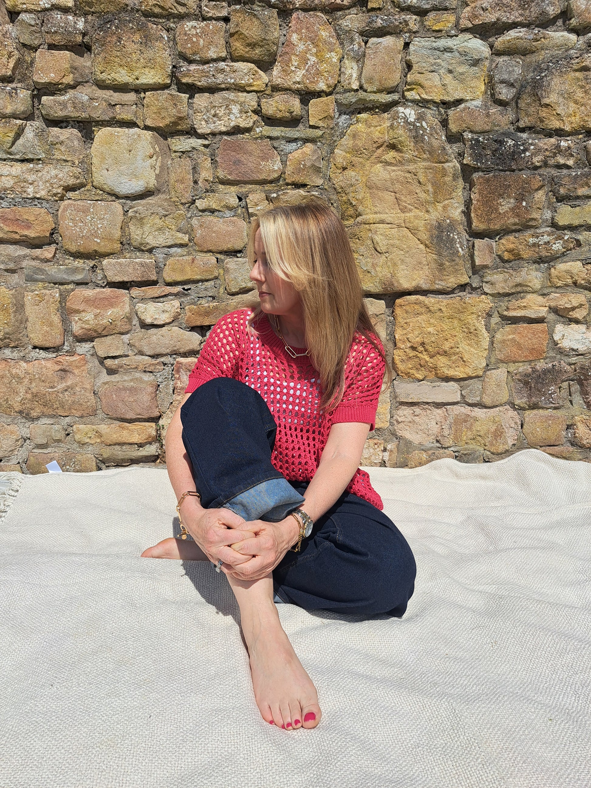 Cotton Mix Crew Neck Holes Jumper - Raspberry
