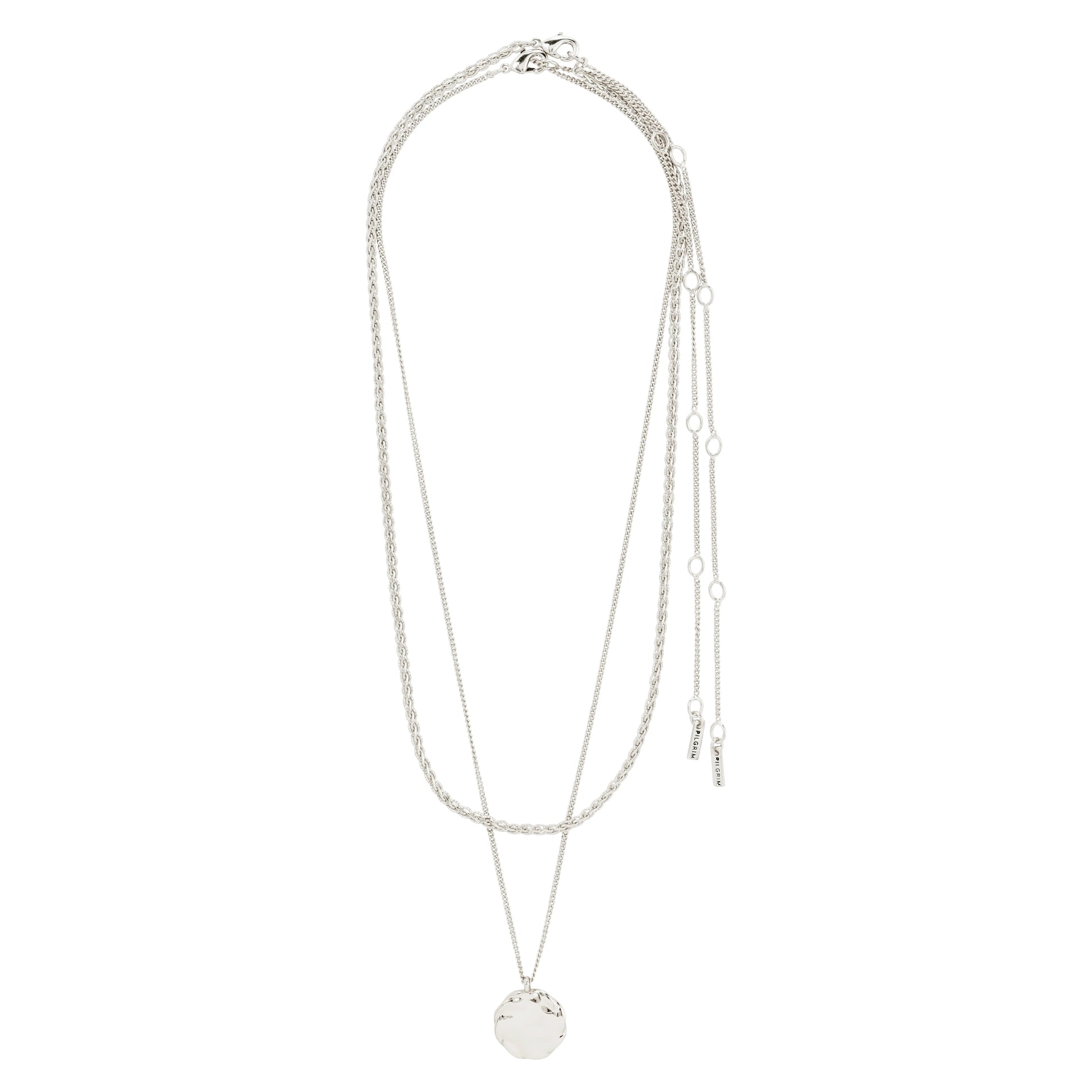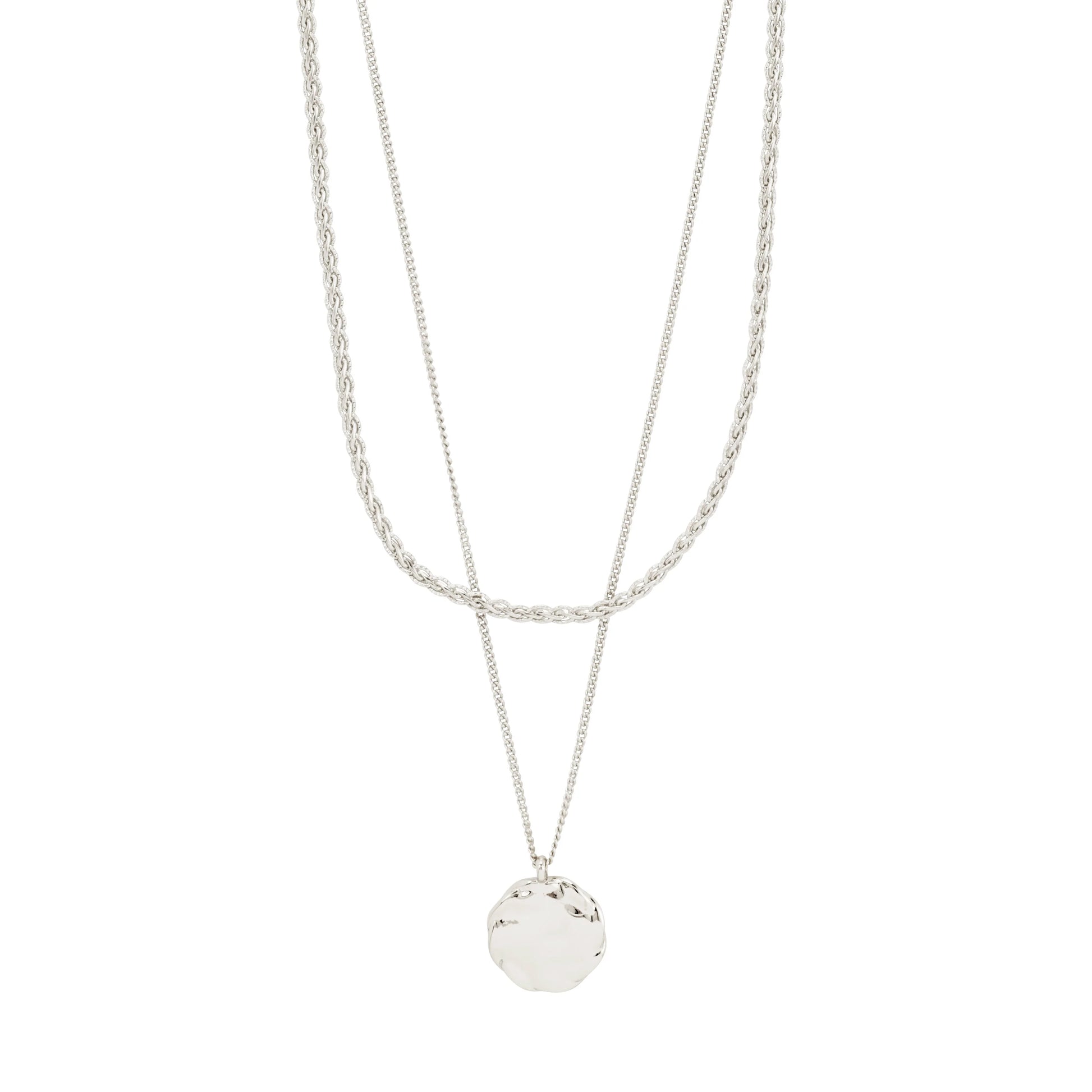 Description: Double the style! Silver-plated set featuring two separate necklaces – a braided chain and a coin-chain with a rustic, shiny pendant. Ideal layering pieces for a stacked style that captures seasonal trends, or wear them individually for a minimalist statement that elevates your everyday outfits.
