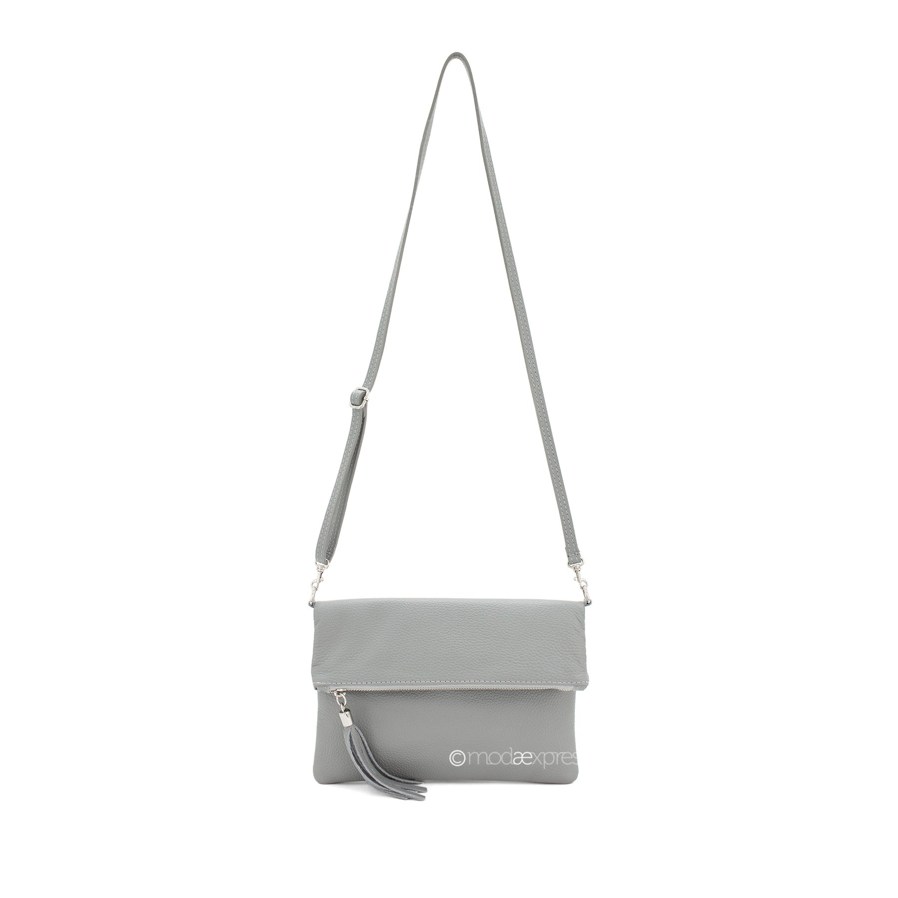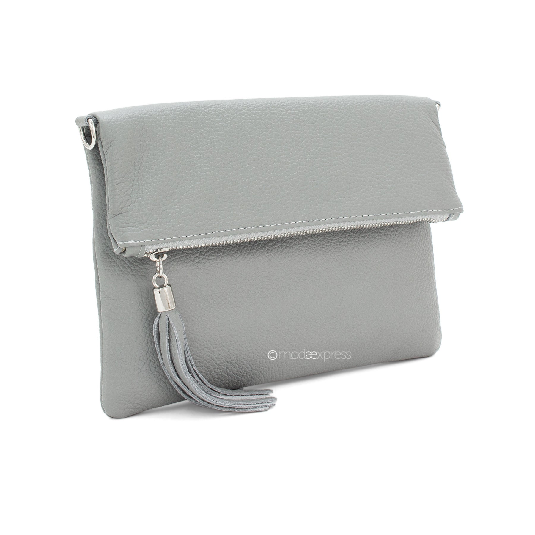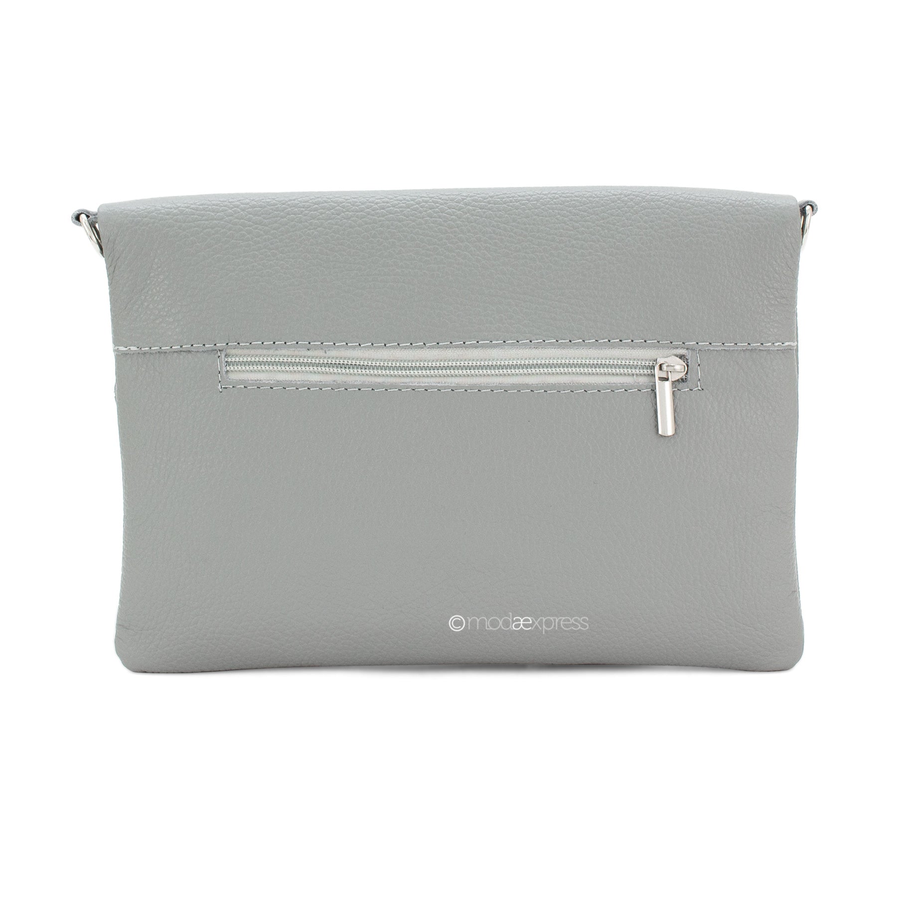 Fold Over Leather Clutch - Light Grey