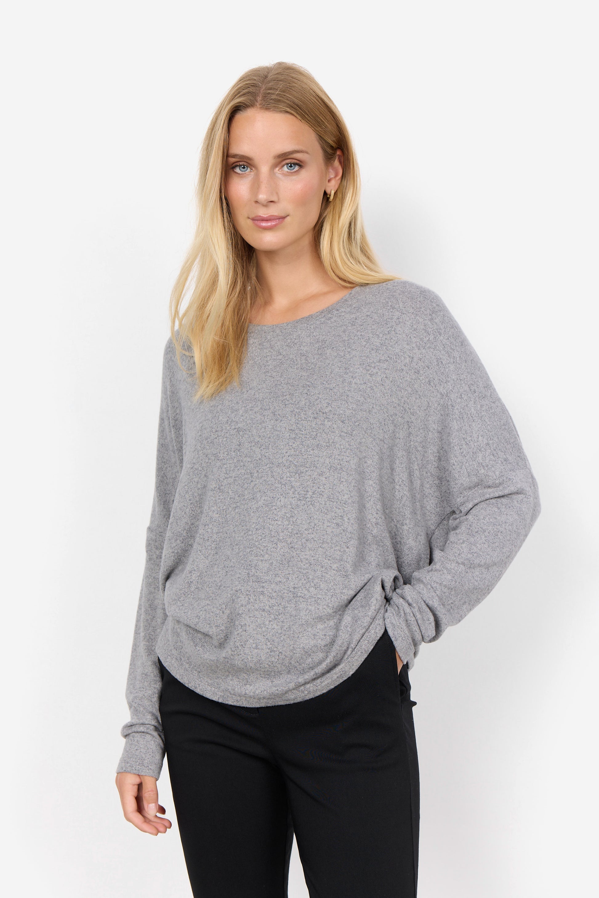 It has a round neckline, elastic ripped edge at the cuffs and a loose fit.