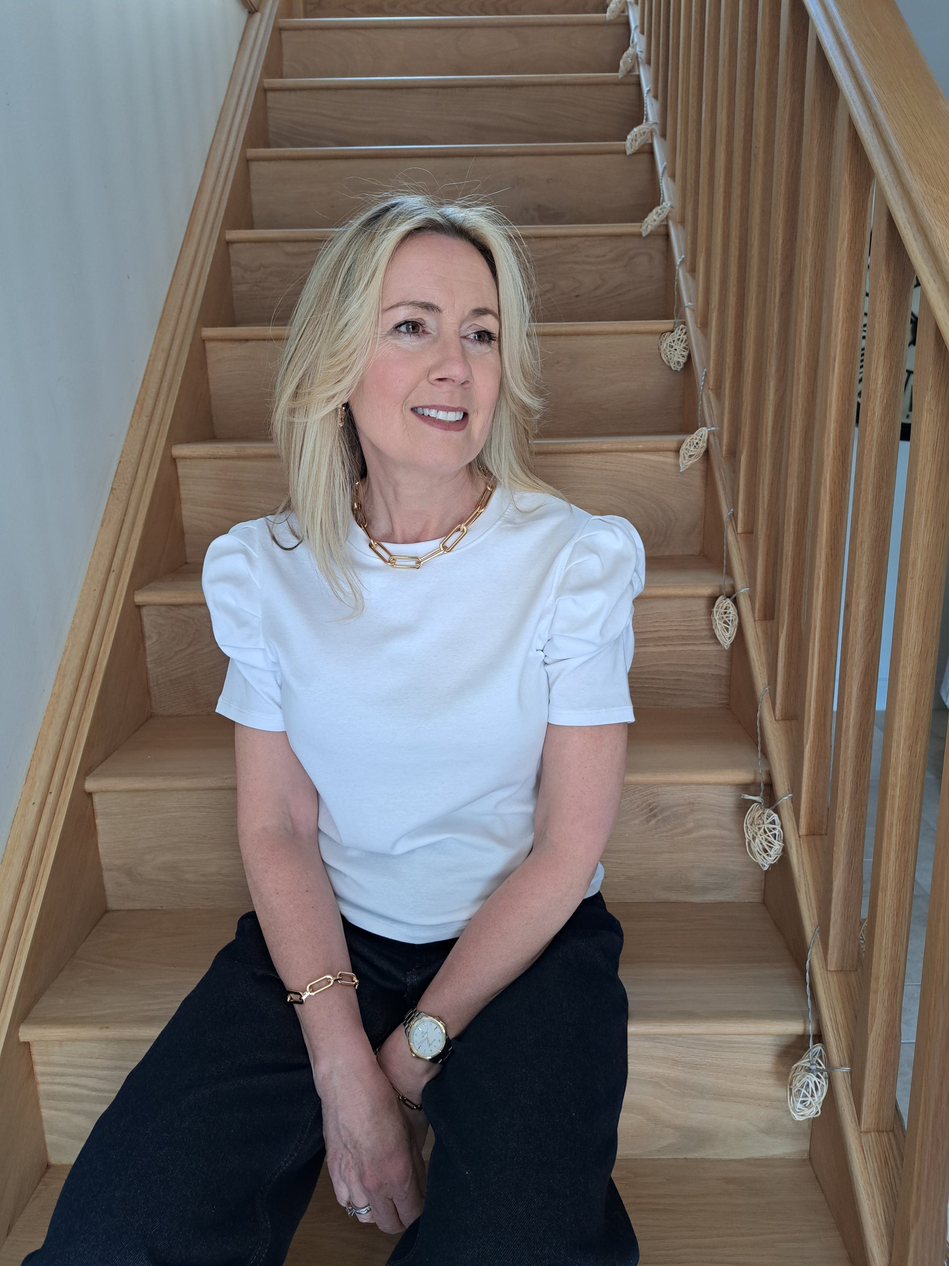 A lovely feminine twist to a wardrobe staple, this crew neck t-shirt with ruched sleeves looks great with jeans but also adds a nice touch when paired with our long maxi skirts.