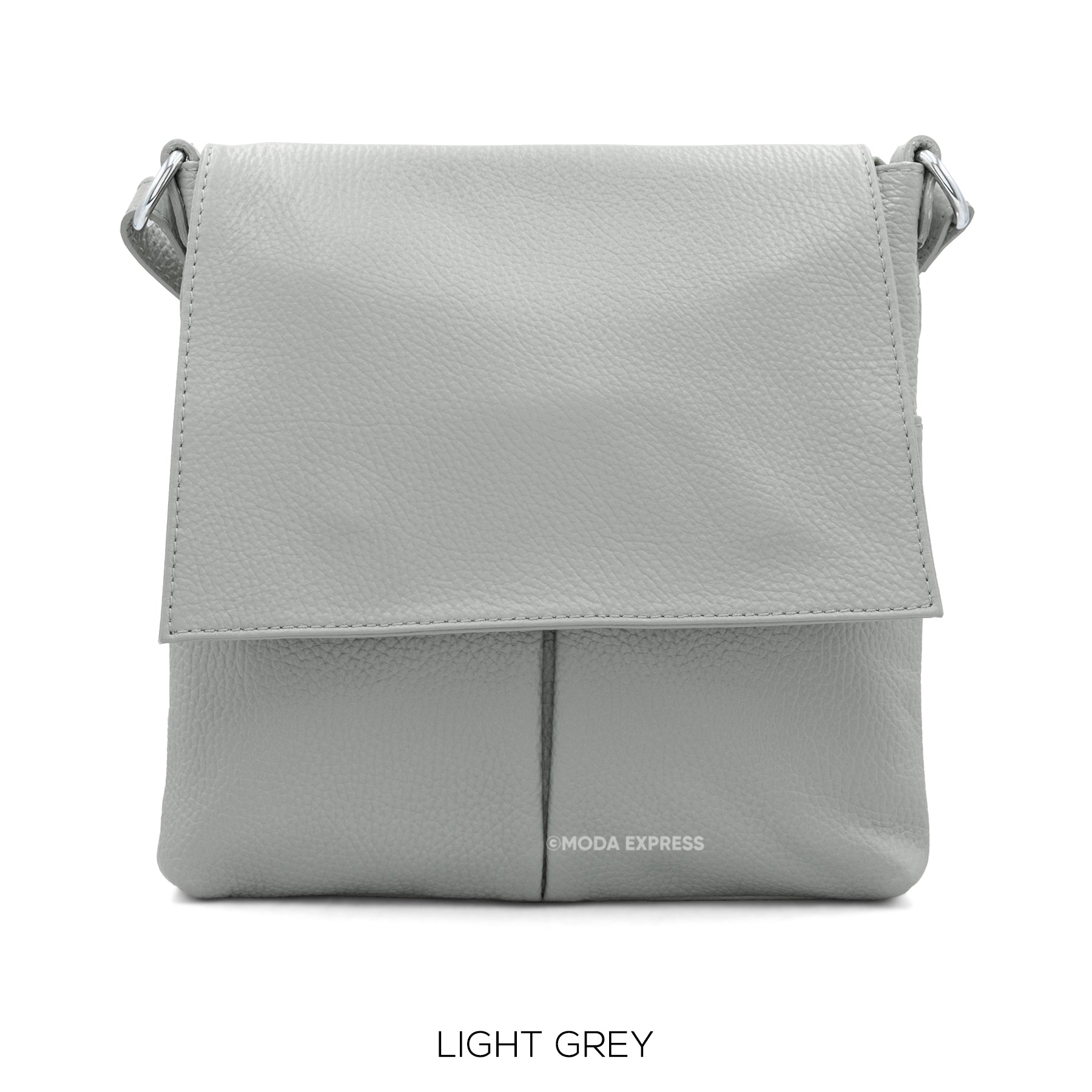 Leather Crossbody Bag with Two Pockets - LIght Grey