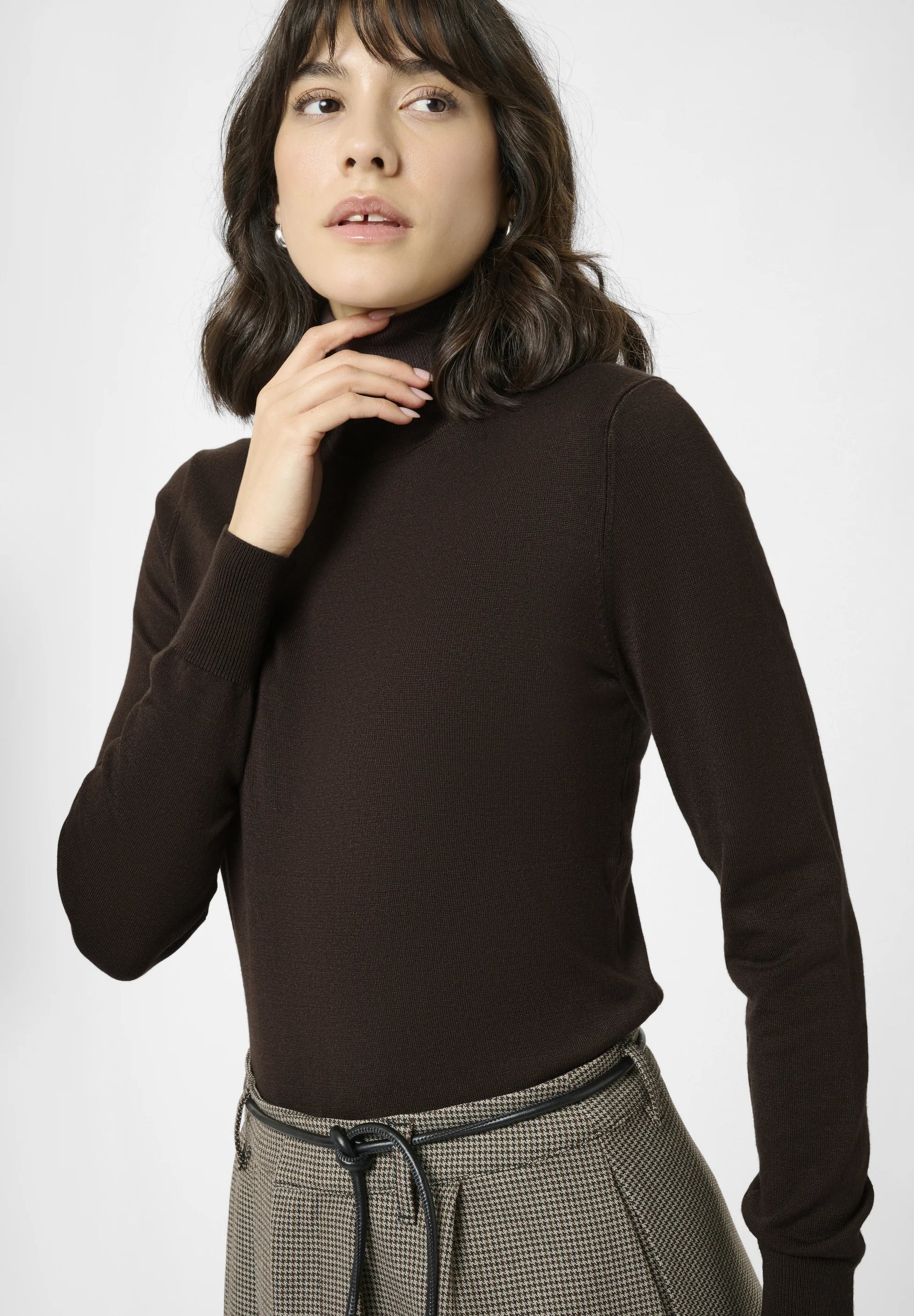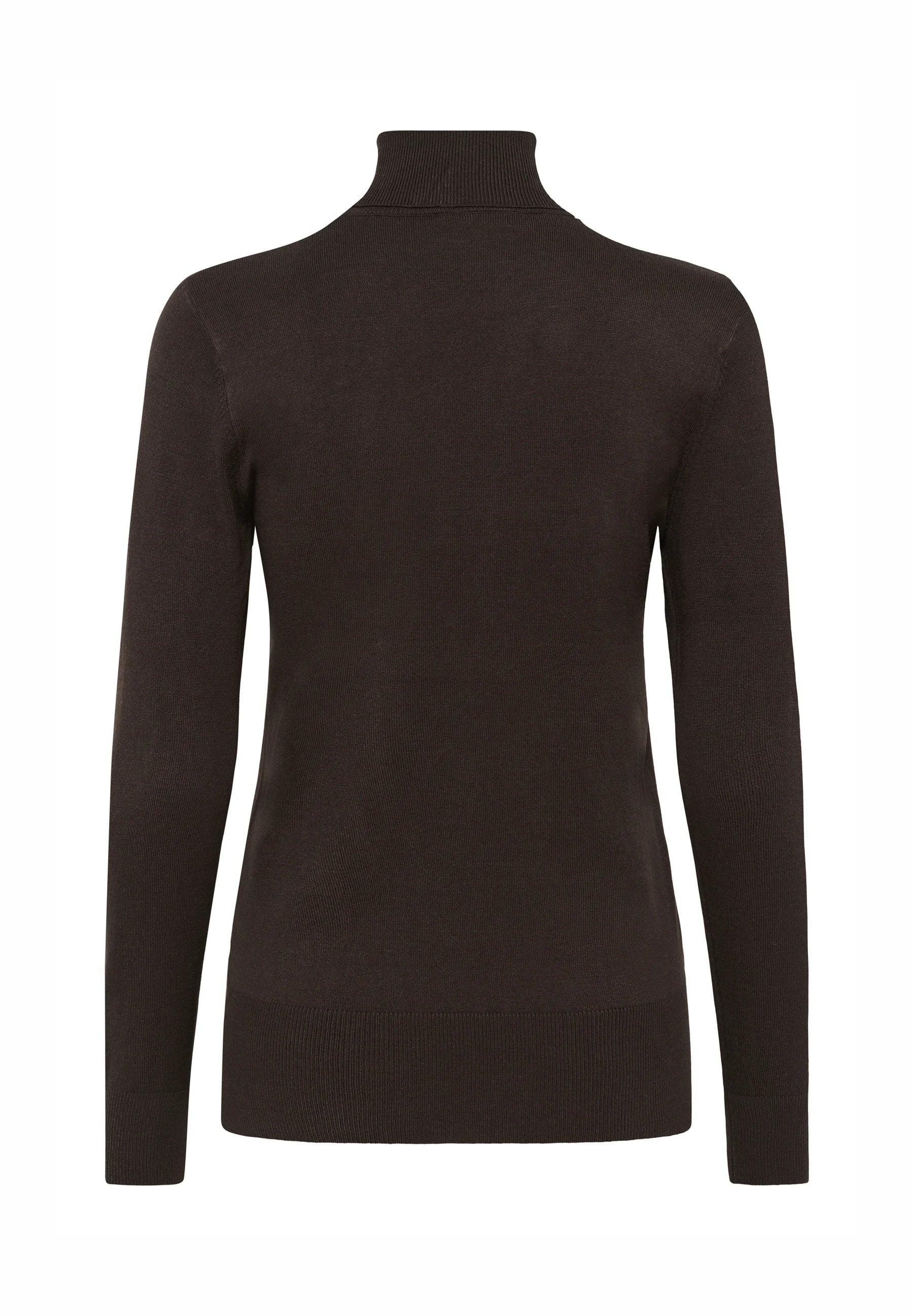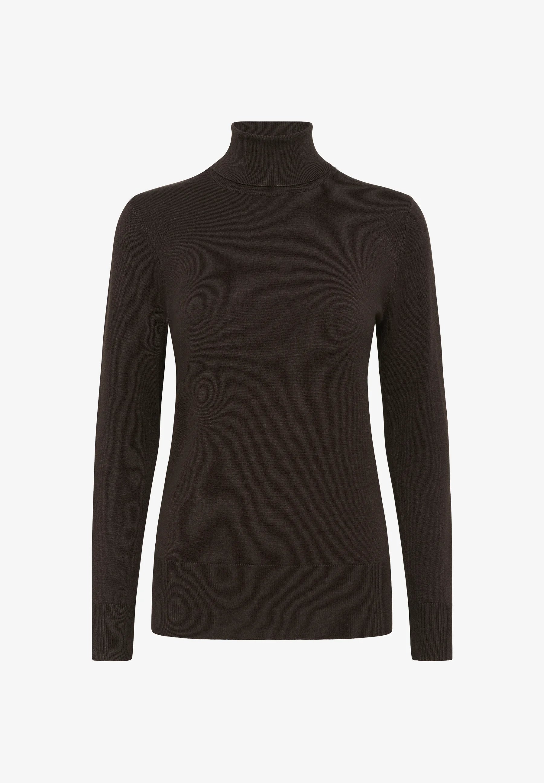 Long Sleeve Fine Knit Polo Neck - Chocolate Brown