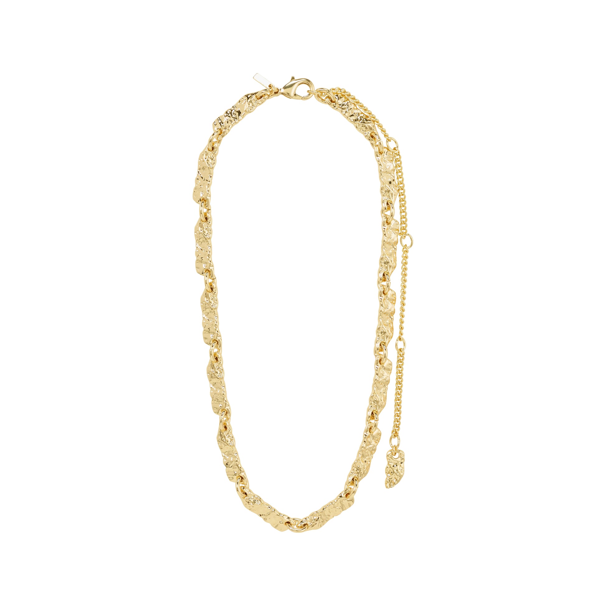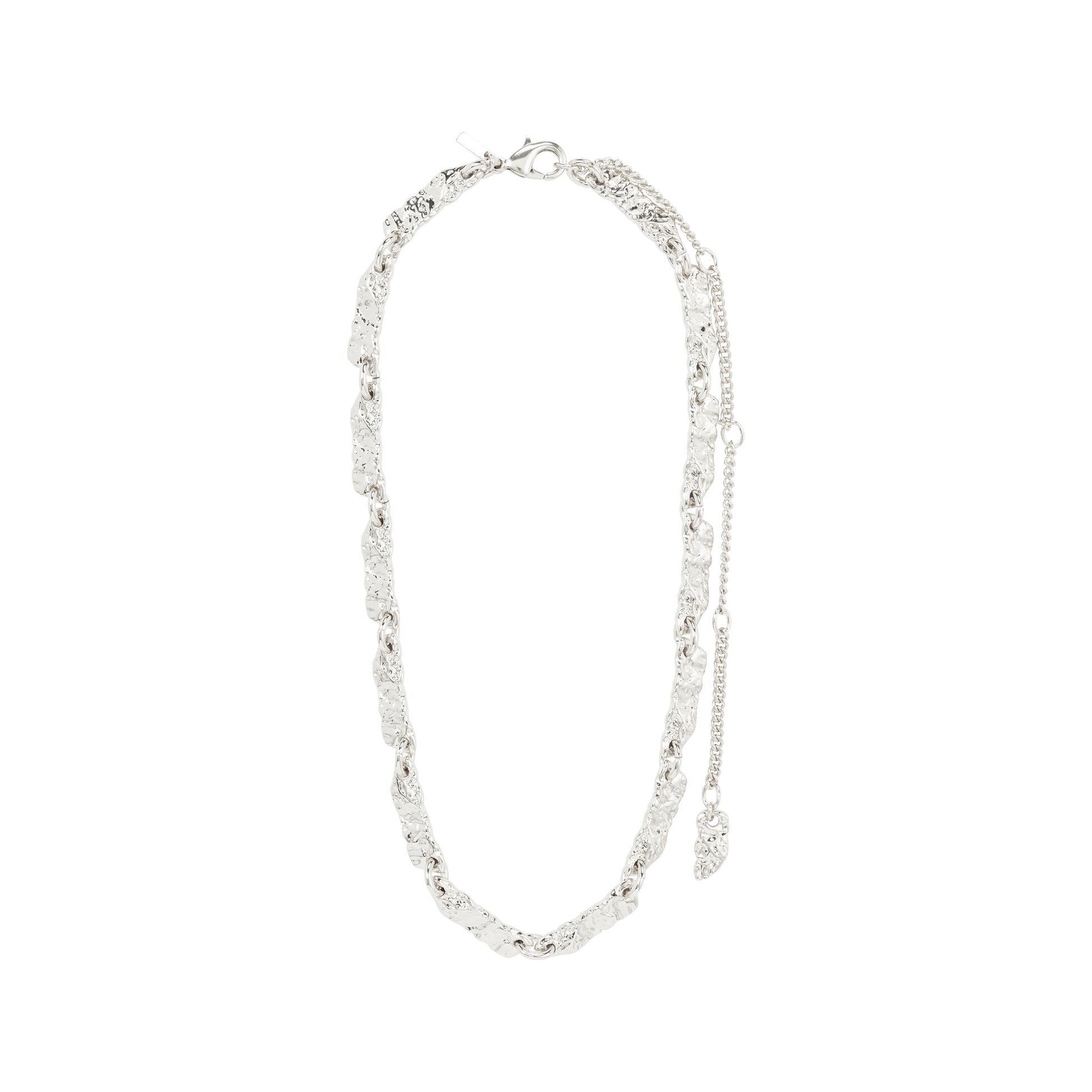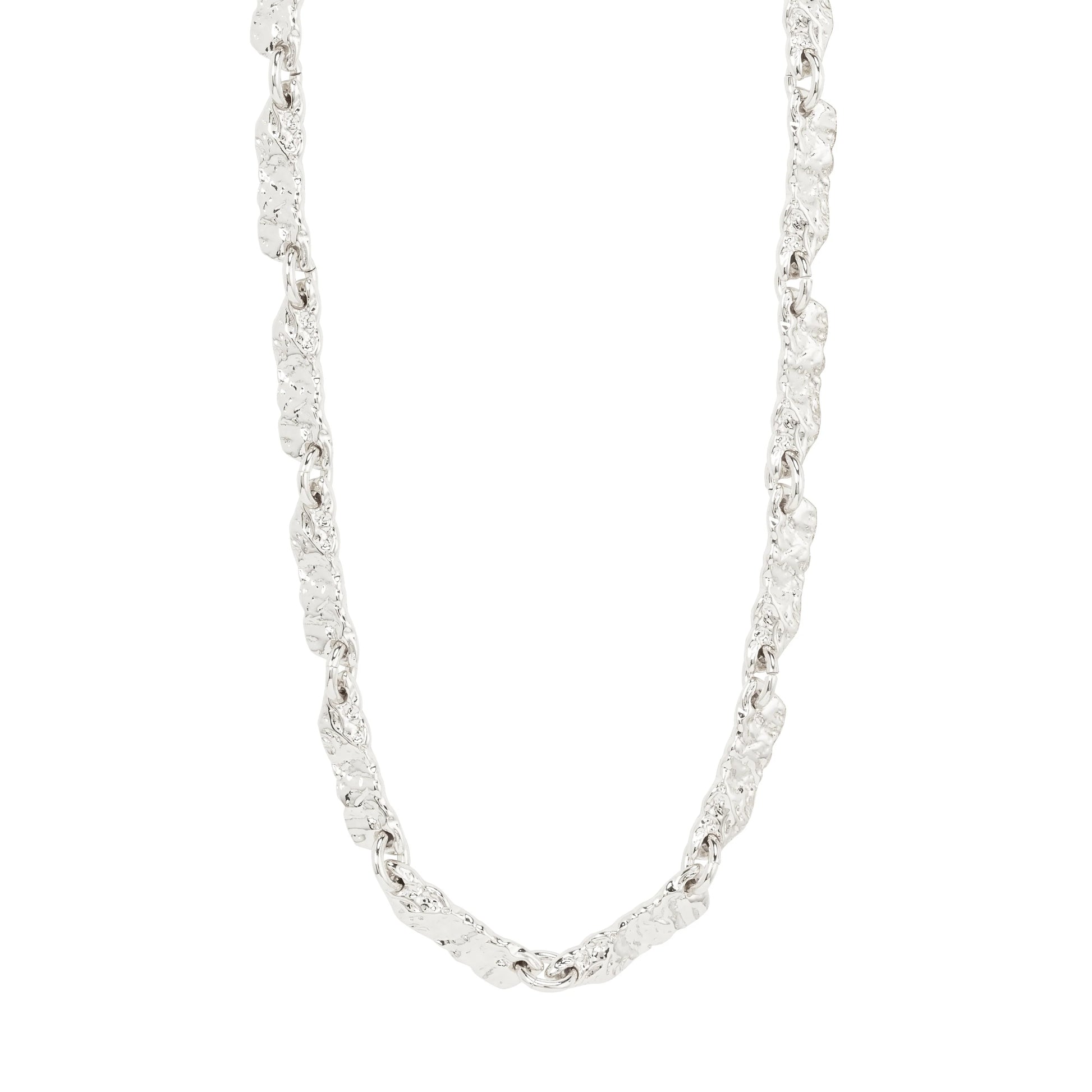 Description: Instant glow, timeless appeal! With this gold or silver-plated necklace from Pilgrim's INSTANT collection, you receive a piece with flat rectangular links and uneven texture in a beautiful, shiny finish. A chain with a handcrafted vibe that gives your look an instant lift and a stylish wow-factor. Pair it with an oversized suit and a pair of rustic hoops, and you're ready to rock! With the INSTANT necklace, you not only display your sense of style but also your commitment to the planet, as it is crafted from 99% recycled material.