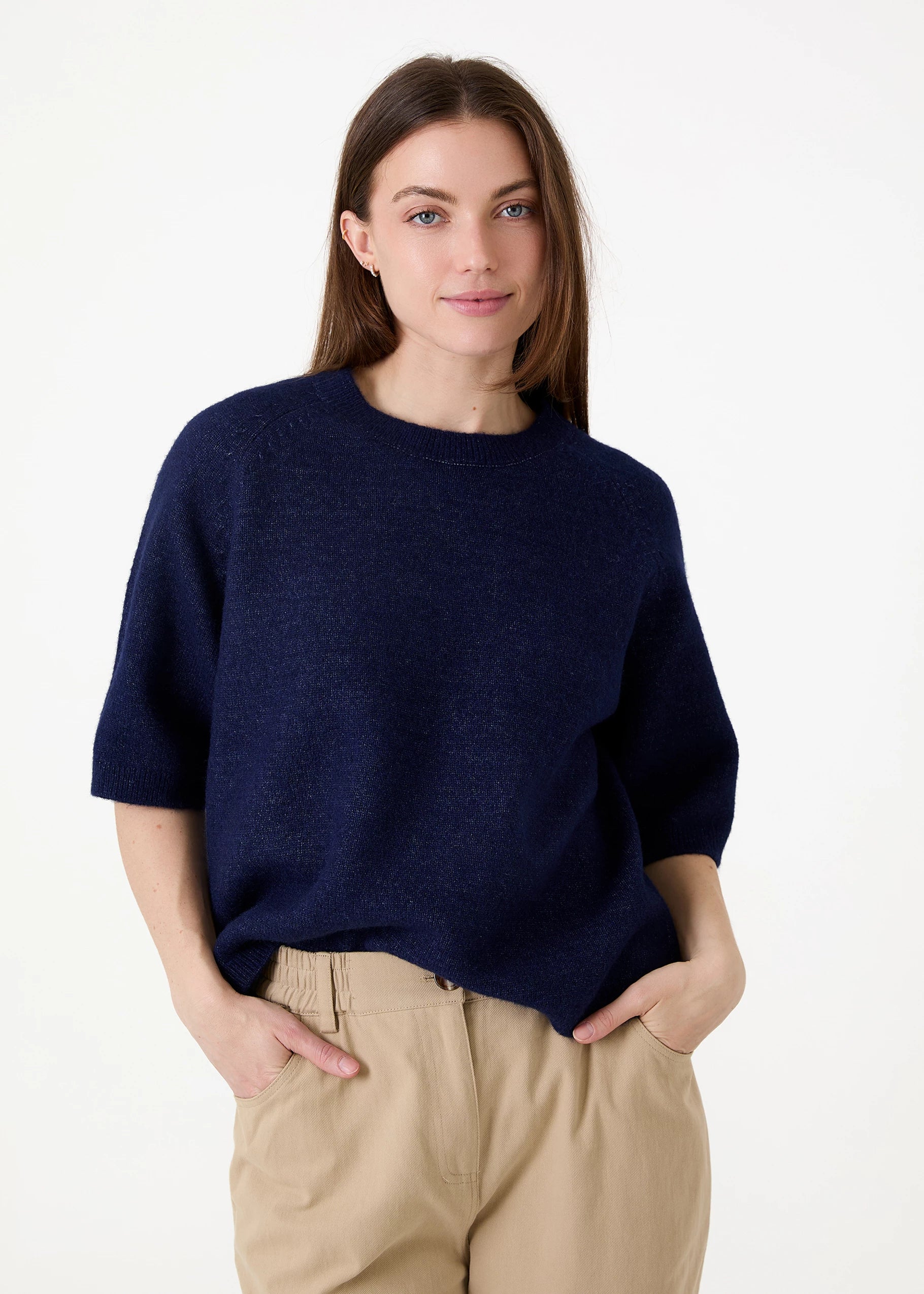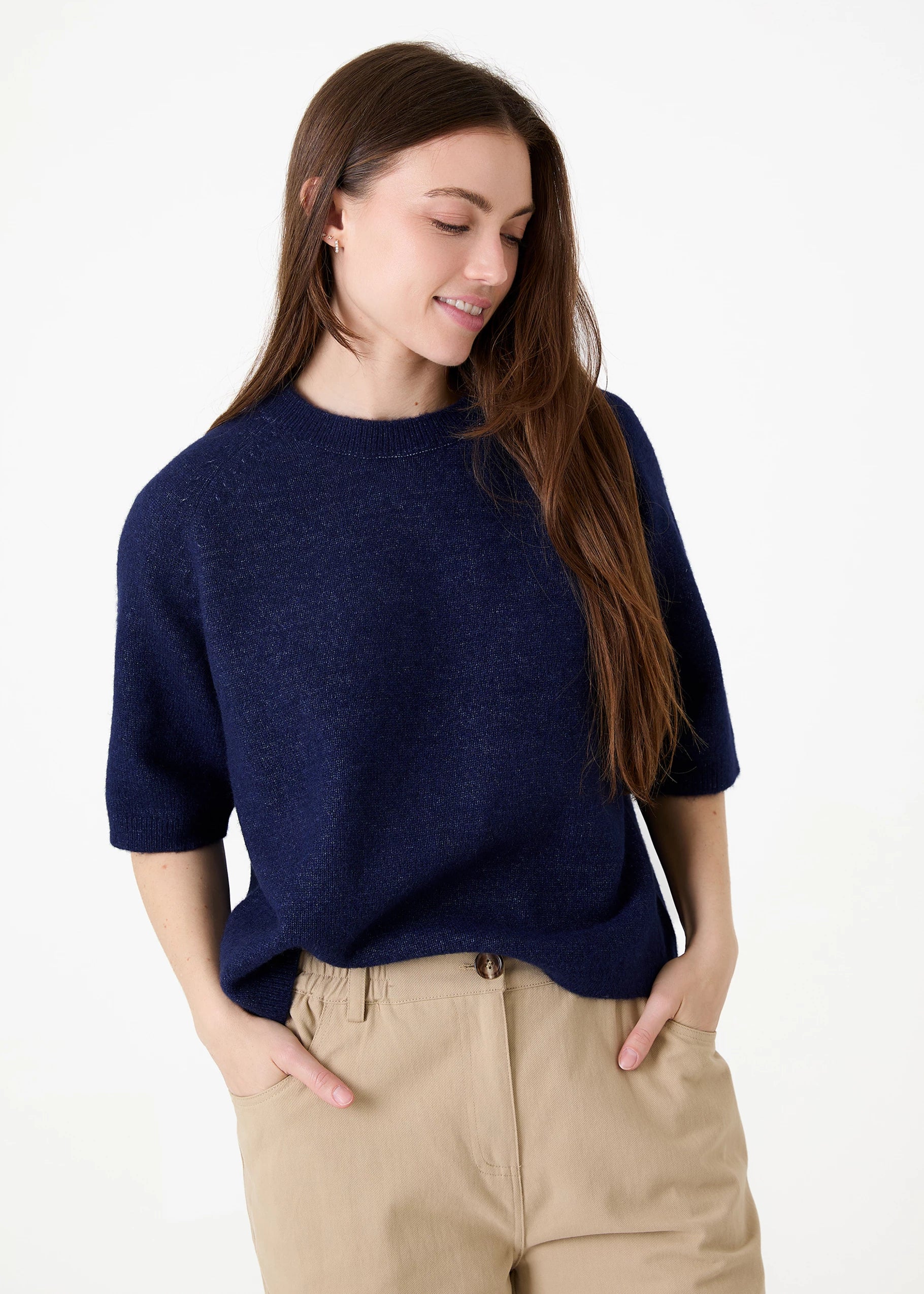 Soft Tweed Short Sleeve Raglan Jumper - Grey / Mink / Navy / Teal