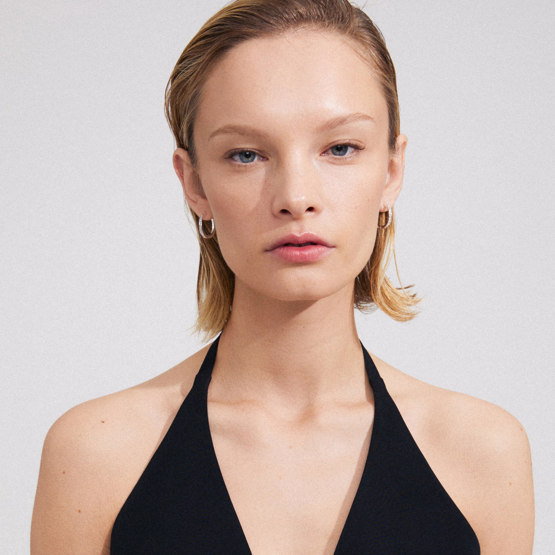 Description: This season's go-to! Silver-plated hoops in an elegant, organic shaped design with shiny Preciosa crystals. A set of earrings that matches any effortless outfit and easily mixes with your other favourites for a trendy curated look for your ears. The hoops have an easy-to-use click clasp and are made of 94% recycled material.